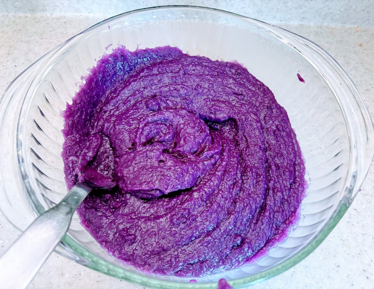 If using fresh ube, peel, boil, and mash until smooth. If using frozen grated ube, thaw completely.